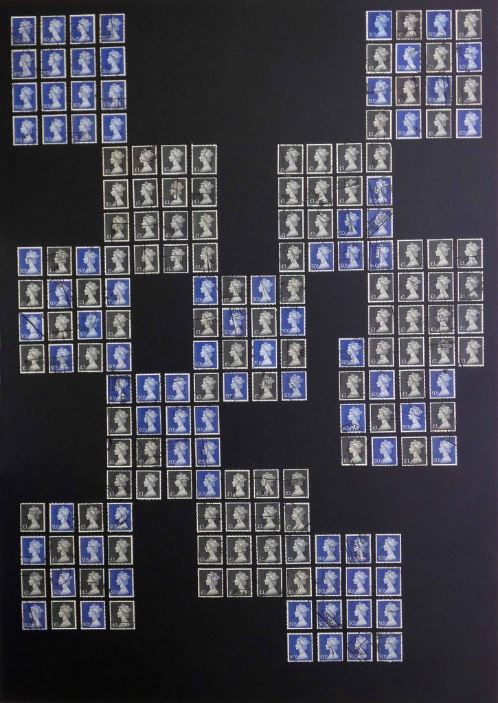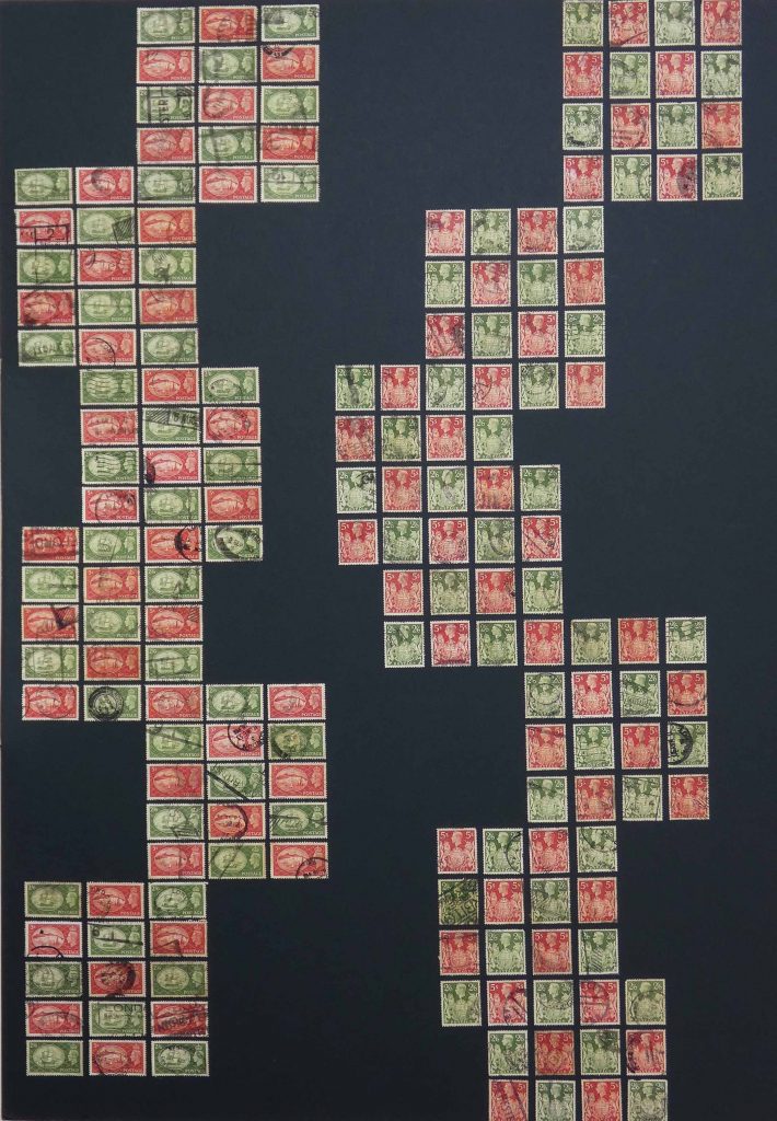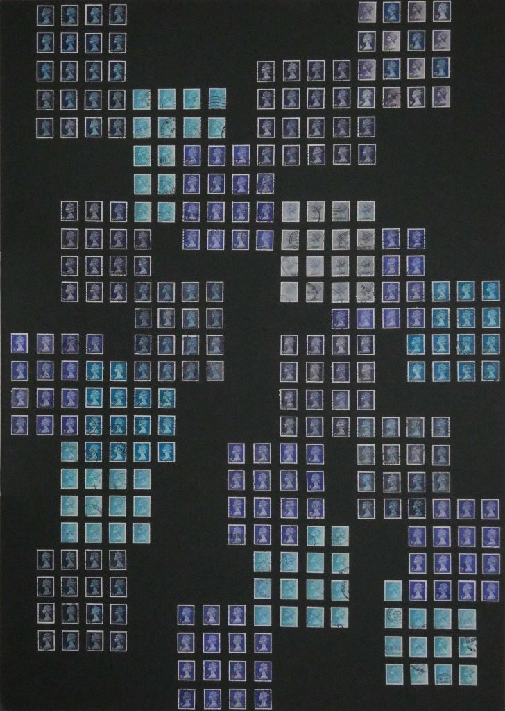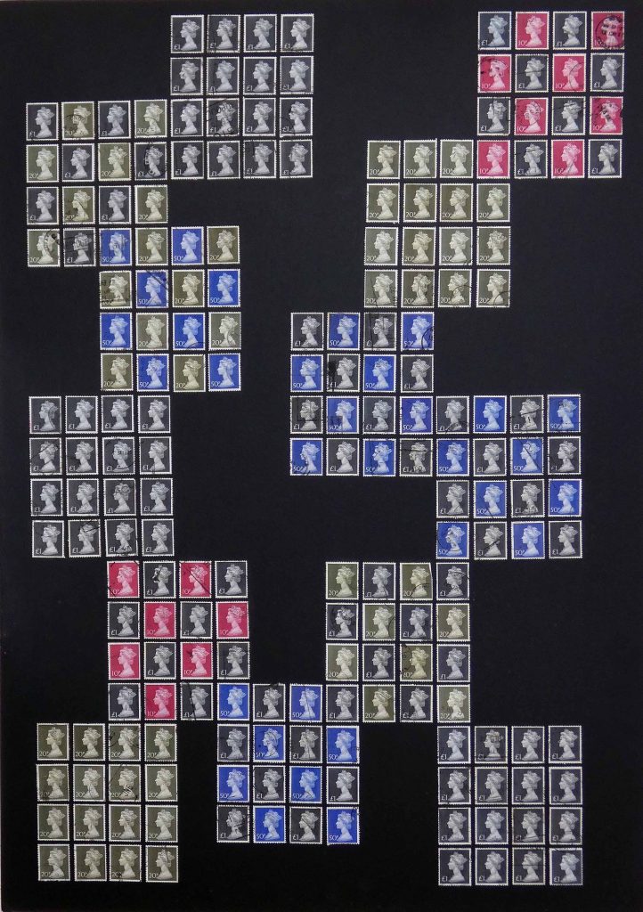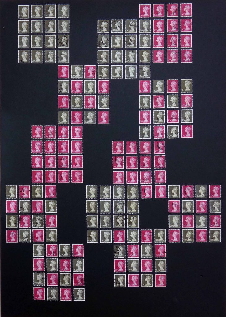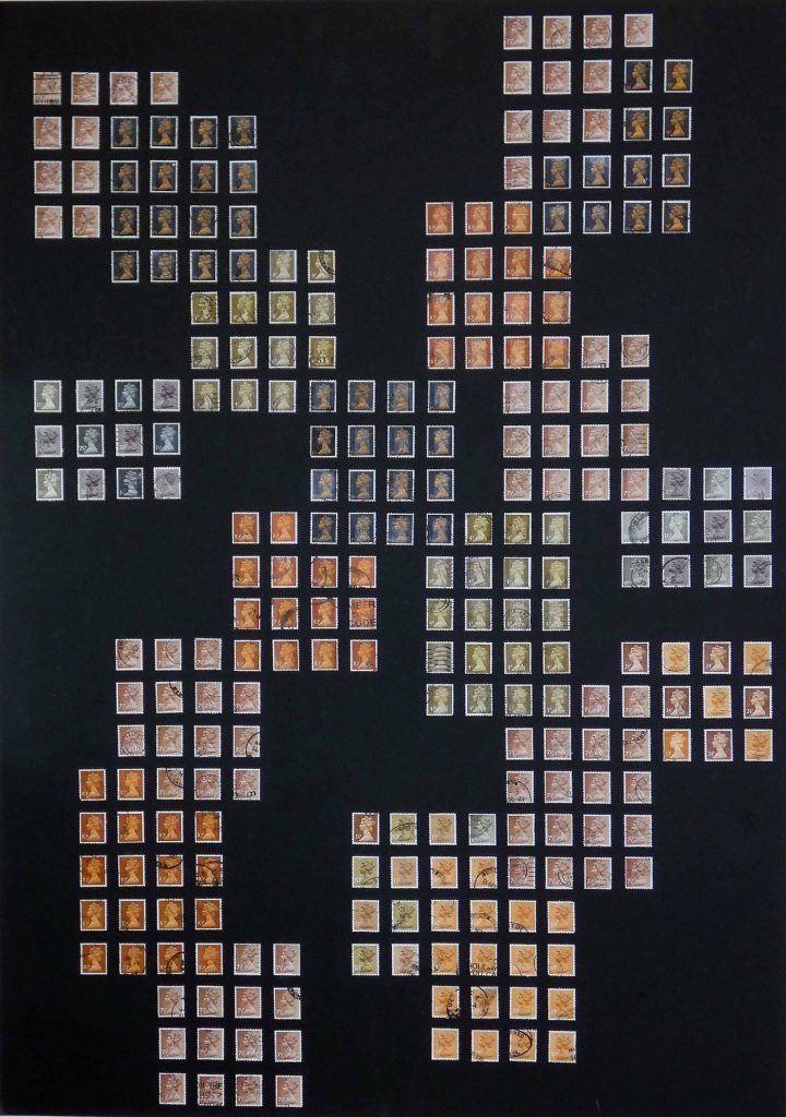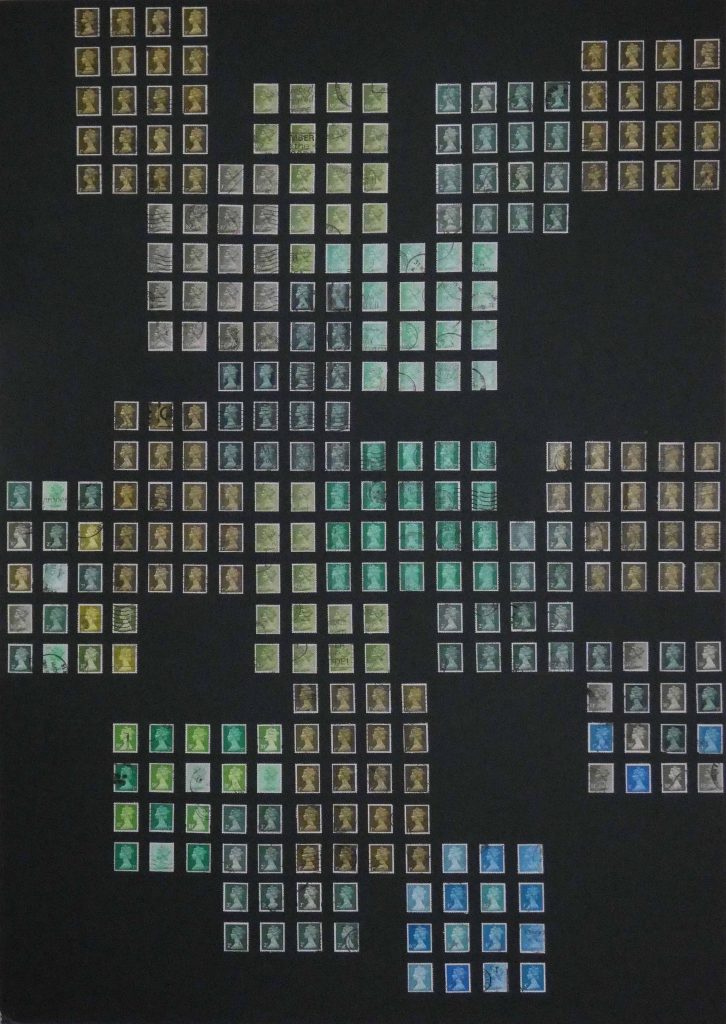 A Stamp Art project focusing on The 1970’s Contemporary Art movement, reflected in the colours of the 70’s using GB postage stamp issues of pre and post decimalisation, and the introduction of a new monetary system.