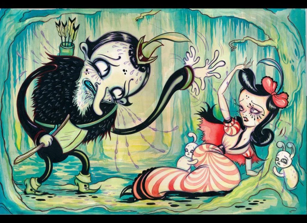 A visual art movement in Los Angeles, Lowbrow Art came to fruition in the late 1970s. Artists drew inspiration from punk music, underground comix, and hot-rod culture. With painting as the most common medium, Lowbrow Art is often characterized as being humorous or sarcastic. Though not seen as “fine art” at the time, Lowbrow Art of the 1970s is often sought out by collectors.