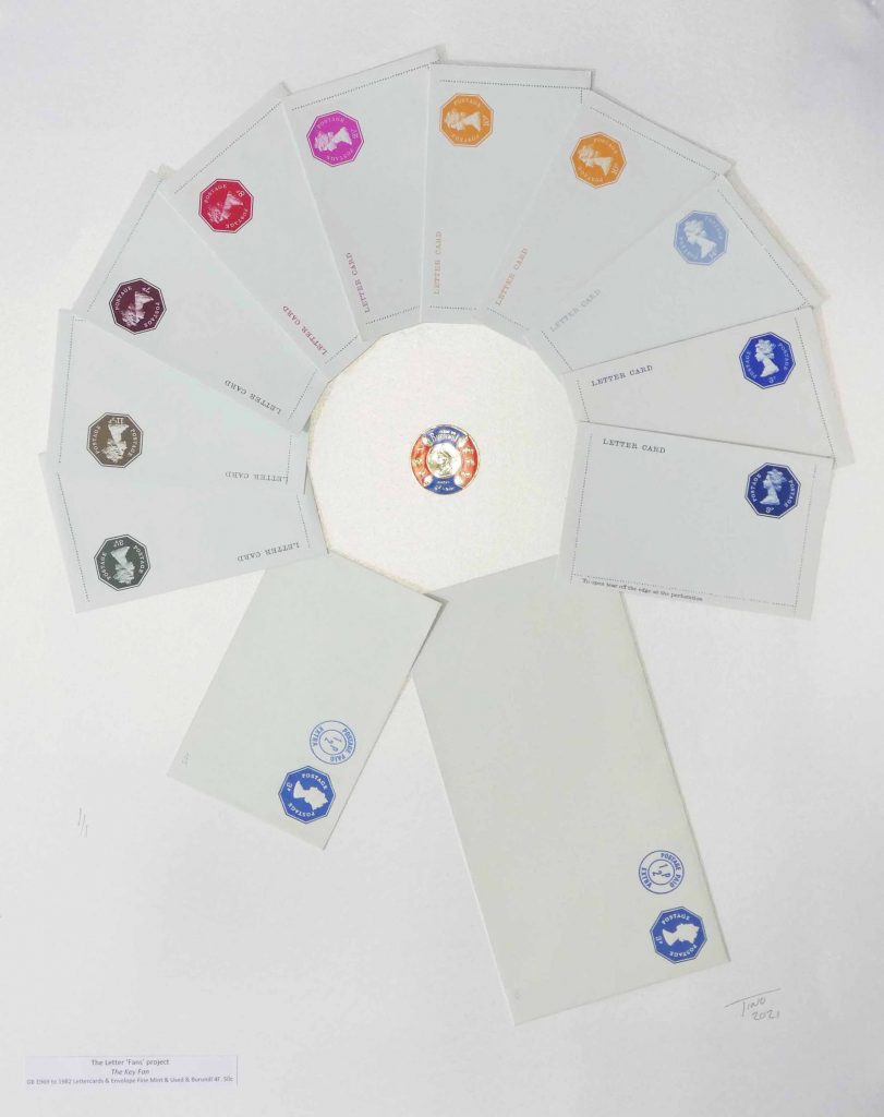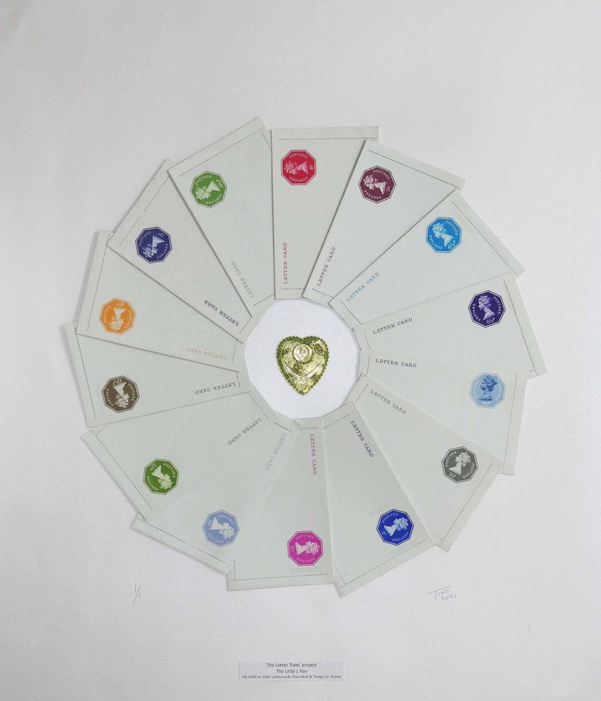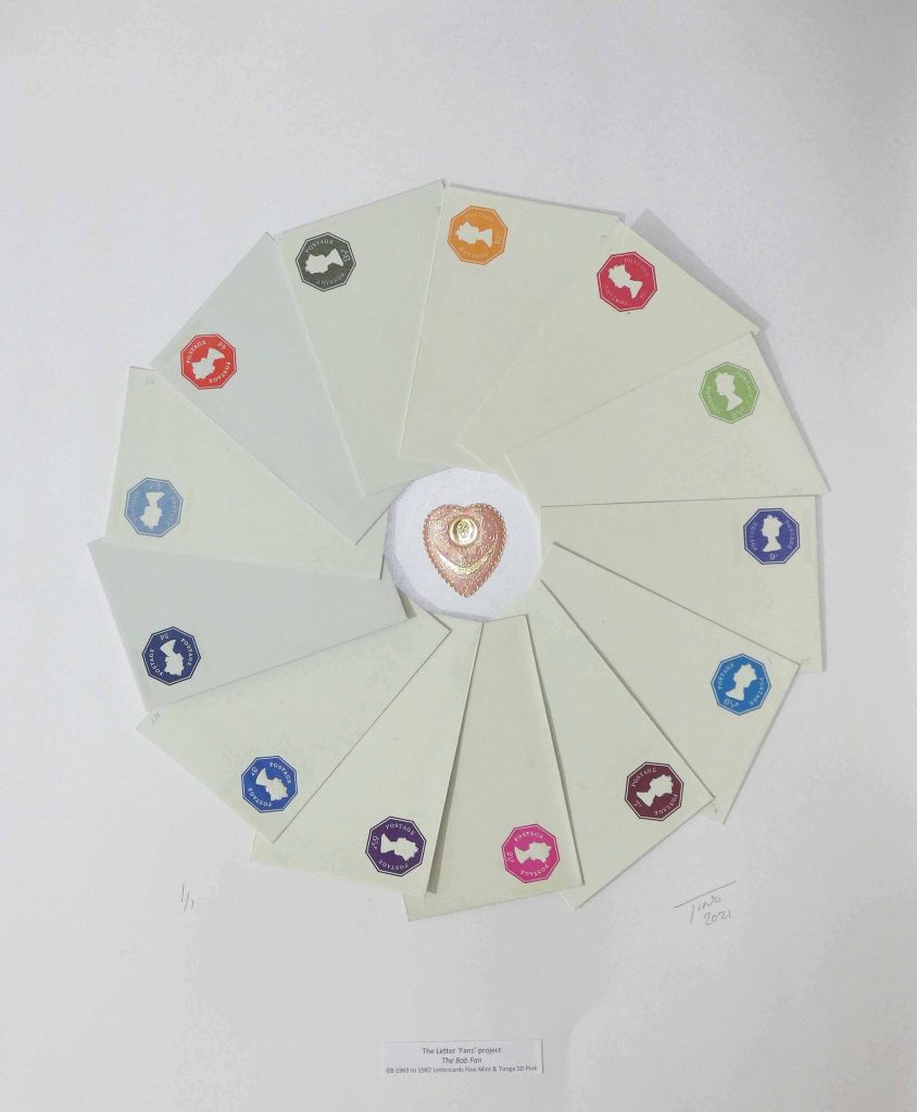 The Stamp Art Covers ‘Fans’ project uses the GB postal and Letter Card in a modern artwork display, promoting the elegant colourful printing in a display of a Victoria ‘Fan’ Artwork.