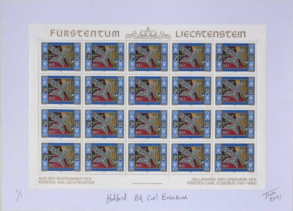 The Stamp Art Liechtenstein ‘Body Guard’ project, presents an infomative and educational review of Halberd for the Bodyguard of Karl Eusebius, Prince of Liechtenstein issues which are unique in their display of story telling, presented in Artwork Layouts with a number of ‘Limited Edition’ Fine Artwork prints available for sale in the Stamp Art Gallery Shop.