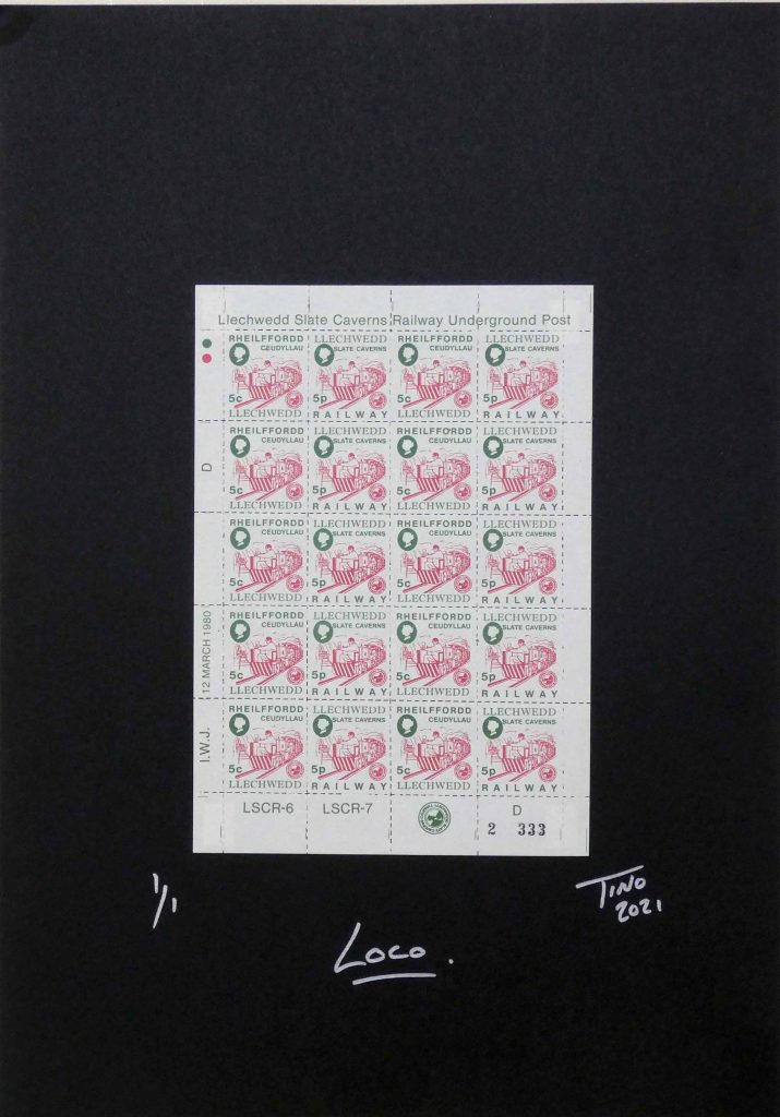 GB LLECHWEDD SLATE CAVERNS RAILWAY stamps. Presented as the original sheets of issue, in ‘Fine Mint’ condition, with printers colours and numbering LSCR-6 and LSCR-7, D2 333 ‘Loco’, Very Rare and collectable.