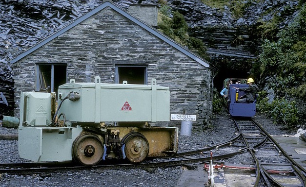 The Miners’ Tramway at Llechwedd Slate Caverns was opened in 1972. On 24 March 1973 the BEV battery-electric locomotives were taking the tourist wagons about 800 metres into the mountain. Eventually a funicular railway to the “Deep Level” was opened, and the Tramway closed in 2014.