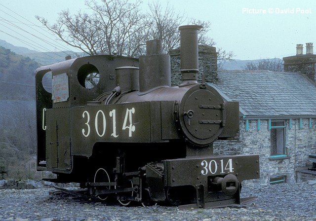 Kerr Stuart supplied many locomotives for use in the 1914-1918 War, and No. 3014 of the “Joffre” class had been built in 1916. In the 1970s it was obtained for a proposed tourist line at Pen-yr-Orsedd Quarry, which did not materialise, and it moved to Gloddfa Ganol, at Blaenau Ffestiniog, where it was photographed on 15 March 1980. It was most recently seen in 2018 at Apedale, operating under the care of the Moseley Railway Trust.